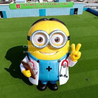 Bring joy and laughter to any event with the Cartoon3-067 Minions Doctor Theme Inflatable Model Product from Chinee Inflatables Inc.! This adorable giant inflatable features everyone's favorite Minion character dressed as a friendly doctor, complete with authentic medical details including a pristine white lab coat, professional stethoscope, and medical clipboard.