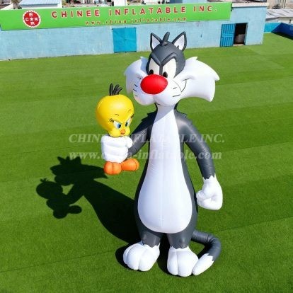 Bring classic cartoon magic to your event with our Cartoon3-122 Sylvester and Tweety Inflatable Cartoons! This delightful inflatable set features the beloved Looney Tunes duo - Sylvester the Cat with his iconic black and white coloring, red nose, and mischievous grin, alongside the adorable yellow Tweety Bird with bright orange feet and charming expression.