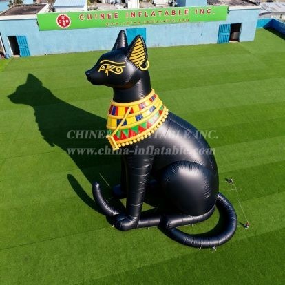 Step into ancient Egypt with our magnificent Cartoon3-170 Egyptian Cat Goddess Inflatable Model Product! This stunning black inflatable cat captures the mystique and grandeur of ancient Egyptian culture, featuring authentic hieroglyphic-style golden eye of Horus decoration and beautifully detailed traditional Egyptian collar with vibrant geometric patterns in red, yellow, green, and blue.