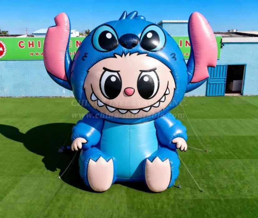 Bring the mischievous charm of everyone's favorite blue alien to life with the Cartoon3-234 Blue Alien Stitch Costume Inflatable Character Model from Chinee Inflatables Inc. This spectacular oversized inflatable captures the adorable essence of the beloved Disney character with remarkable attention to detail, featuring the character's signature blue coloring, large expressive eyes, distinctive ears, and that unmistakable toothy grin.