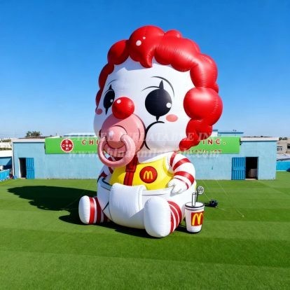 Manufactured with premium-quality materials by Chinee Inflatables, established in 1998 as China's leading inflatable manufacturer, this spectacular inflatable model stands tall as the perfect promotional tool for restaurants, grand openings, festivals, and special events. The charming baby clown sits comfortably with a branded yellow bib and holds a signature drink cup, making it ideal for fast-food chain promotions and family-friendly marketing campaigns.