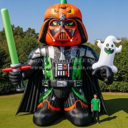 Bring spine-tingling fun and intergalactic flair to your seasonal events with the Cartoon3-272 Star Wars Halloween Inflatable Cartoon by Chinee Inflatables. This towering character statue blends a spooky Halloween vibe—complete with pumpkin styling, webs, and a friendly ghost—with a sci‑fi warrior look that instantly grabs attention. It is designed as a decoration piece (not for bouncing), perfect for entrances, photo ops, parades, and themed nights at schools, shopping centers, farms, and outdoor festivals.