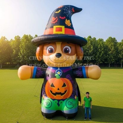 Bring spooky charm to your venue with the Cartoon3-308 Halloween Dog Inflatable from Chinee Inflatables Inc. This towering character features a friendly puppy dressed in a witchy hat and robe, highlighted with spiderweb graphics and a big jack-o’-lantern on the body. Designed as a decorative inflatable cartoon (not for bouncing), it creates an eye‑catching focal point for festivals, school fairs, pumpkin patches, shopping centers, city parks, and outdoor photo zones.