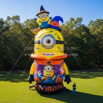 Bring eye‑catching fun to your autumn events with the Cartoon3-397 Minions Halloween Inflatable Cartoons by Chinee Inflatables Inc. This towering decorative piece features a cheerful one‑eyed character dressed for spooky season, complete with witch hat, bats, spider webs, and festive graphics. Designed strictly as a display inflatable (not for bouncing or sliding), it is perfect for theme parks, community festivals, pumpkin patches, trunk‑or‑treat nights, school fairs, and rental setups that need a highly visible holiday centerpiece.