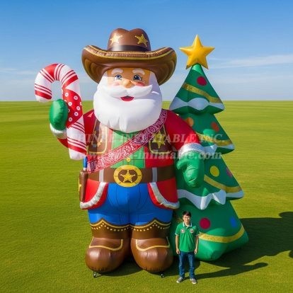 Bring holiday magic to your venue with our larger‑than‑life Cowboy Santa inflatable from Chinee Inflatables Inc. This cheerful character features a friendly Santa in a Western outfit holding a candy cane, paired with a decorated Christmas tree topped with a star. Designed as a decorative showpiece (not for bouncing), it instantly creates a festive focal point for malls, town squares, store fronts, theme parks, parades, and corporate holiday events.