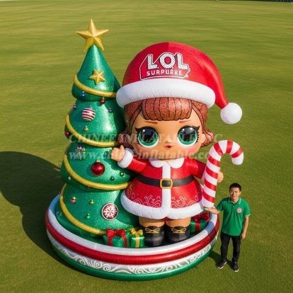 Delight crowds this holiday season with our L.O.L. Surprise Christmas Inflatable Cartoons display from Chinee Inflatables Inc. This eye‑catching piece features a festive L.O.L. character in a Santa outfit standing beside a sparkling Christmas tree, complete with ornaments, gifts, and a giant candy cane. Designed as a decorative showpiece (not for bouncing), it creates an instant photo spot for shopping malls, town squares, schools, theme parks, brand activations, and winter festivals.