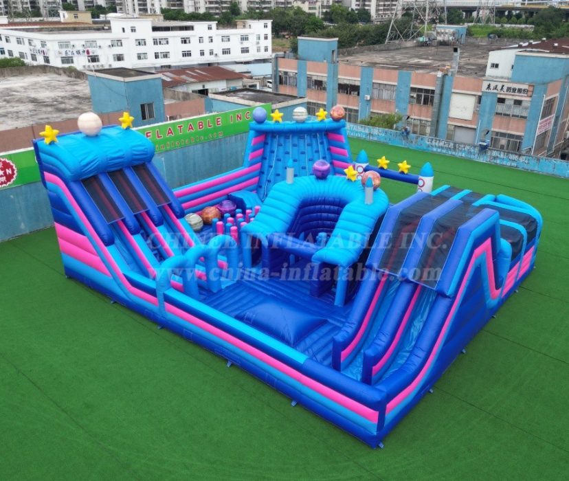 Why This Cosmic Obstacle Course is a Stellar Choice: 🏁 Competitive Fun: The dual-lane design is perfect for encouraging friendly competition, making it a massive hit at school carnivals, corporate team-building events, and parties. ✨ Vibrant, Eye-Catching Design: The unique galaxy theme and colors stand out beautifully and attract riders of all ages. 📈 High-Energy & High-Throughput: Keeps lines moving and energy levels high, making it a profitable and popular rental piece. 💪 Superior Factory Quality: Designed and built by Chinee Inflatables using premium, durable materials and safety-first construction for reliable commercial use.