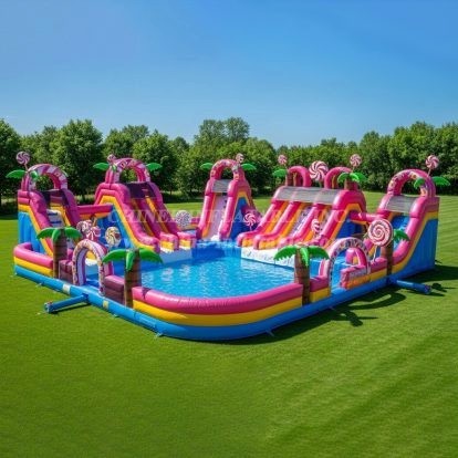 Our sewing tech is double stitching with fourfold stitching at the bottom stress point, we take care of all these details with extra reinforced bars to guarantee without any problems when customers use them, ensuring that the inflatables have a lifetime of over 3 years.