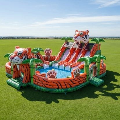 Our sewing tech is double stitching with fourfold stitching at the bottom stress point, we take care of all these details with extra reinforced bars to guarantee without any problems when customers use them, ensuring that the inflatables have a lifetime of over 3 years.