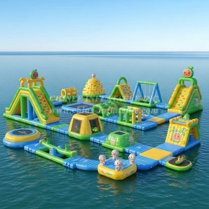 Chinee use customized anti UV&heat material makes the life span of the floating water park 30%-50% longer than normal material that most suppliers have been using, especially for the strong UV and high-temperature area.
