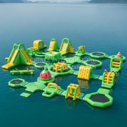 Chinee use customized anti UV&heat material makes the life span of the floating water park 30%-50% longer than normal material that most suppliers have been using, especially for the strong UV and high-temperature area.