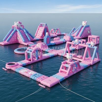 Chinee use customized anti UV&heat material makes the life span of the floating water park 30%-50% longer than normal material that most suppliers have been using, especially for the strong UV and high-temperature area.