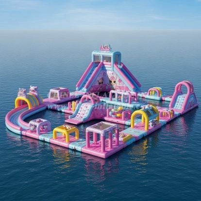 Chinee use customized anti UV&heat material makes the life span of the floating water park 30%-50% longer than normal material that most suppliers have been using, especially for the strong UV and high-temperature area.