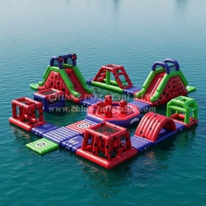 Chinee use customized anti UV&heat material makes the life span of the floating water park 30%-50% longer than normal material that most suppliers have been using, especially for the strong UV and high-temperature area.