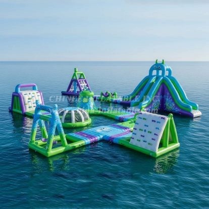 Chinee use customized anti UV&heat material makes the life span of the floating water park 30%-50% longer than normal material that most suppliers have been using, especially for the strong UV and high-temperature area.