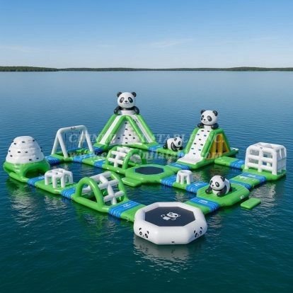 Chinee use customized anti UV&heat material makes the life span of the floating water park 30%-50% longer than normal material that most suppliers have been using, especially for the strong UV and high-temperature area.