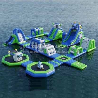 Chinee use customized anti UV&heat material makes the life span of the floating water park 30%-50% longer than normal material that most suppliers have been using, especially for the strong UV and high-temperature area.