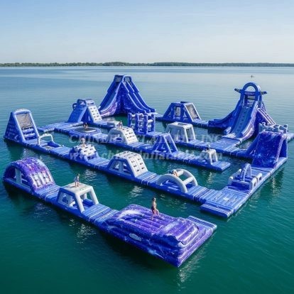 Chinee use customized anti UV&heat material makes the life span of the floating water park 30%-50% longer than normal material that most suppliers have been using, especially for the strong UV and high-temperature area.