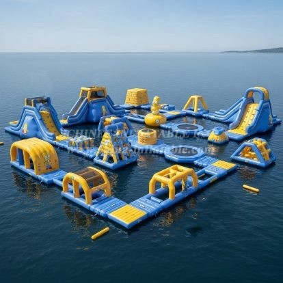 Chinee use customized anti UV&heat material makes the life span of the floating water park 30%-50% longer than normal material that most suppliers have been using, especially for the strong UV and high-temperature area.