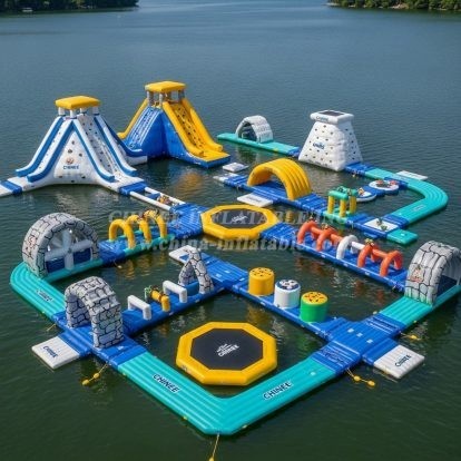 Bring splash-filled excitement to your venue with the S330 Floating Inflatable Water Park by Chinee Inflatables. Designed for lakes, reservoirs, and calm coastal bays, this modular park combines slides, climbing towers, balance beams, trampolines, crawl tunnels, and sprint runways into one cohesive aquatic adventure. The layout forms an engaging, maze-like circuit that encourages group play and friendly challenges, while clear access points and safety buffers help manage traffic and improve throughput during peak hours.