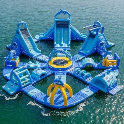 Make waves with the S345 Dolphin Theme Water Park from Chinee Inflatables Inc., the perfect centrepiece for lakes, seaside resorts, and adventure camps. This modular floating park combines towering climbs, multiple slides, balance beams, crawl tunnels, and a central play hub to create a thrilling all‑in‑one attraction. The friendly dolphin graphics and ocean‑blue palette deliver an inviting look that appeals to families and groups while standing out on the water. Built from commercial‑grade PVC tarpaulin with reinforced, heat‑sealed seams, S345 is engineered for heavy daily use and easy maintenance. Stainless D‑rings, anchor points, and safety handles are positioned throughout to ensure stable mooring and secure transitions between elements. Non‑slip textures on climb sections and platforms add confidence for users of different ages and skill levels. The layout encourages continuous flow: guests can climb the walls, conquer rope and step obstacles, sprint across balance runs, and finish with splashy slides back into the water. The modular design allows you to scale capacity, reconfigure the routes, or expand later with compatible sections to keep your venue fresh season after season. Backed by Chinee Inflatables’ 20+ years of manufacturing expertise, global export experience, and responsive service, S345 arrives with professional setup guidance and repair kits for long‑term reliability. Ideal for ticketed operations, camps, and waterfront rentals, this eye‑catching dolphin park turns open water into a profitable attraction. Company: Chinee Inflatables Inc. (est. 1998), Guangzhou, Dongsha Economic & High‑tech Zone. Website: www.china-inflatable.com. Email: [email protected].