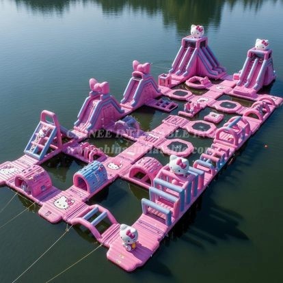 Turn your waterfront into a show-stopping attraction with the S346 Hello Kitty Water Park by Chinee Inflatables. This large-scale floating adventure park blends charming Hello Kitty styling with a thrilling assortment of obstacles, slides, tunnels, balance beams, and play zones. Multiple climb-and-slide towers, crawl-through tubes, hop pads, and maze-style passages encourage nonstop movement and friendly competition, while roomy platforms support smooth traffic flow for groups. The vibrant pink palette and iconic character accents make it a magnet for families, photo moments, and repeat visits.