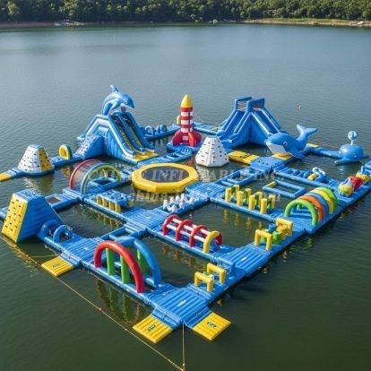 Make a splash this season with the S350 Ocean Theme Water Park from Chinee Inflatables Inc., China’s leading inflatable manufacturer since 1998. This expansive floating adventure course brings an eye‑catching marine look to lakes and calm waterfronts, featuring playful dolphin and whale elements, vibrant rainbow arches, towering climb-and-slide modules, and a variety of balance beams, hurdles, and stepping challenges that keep guests moving and smiling.