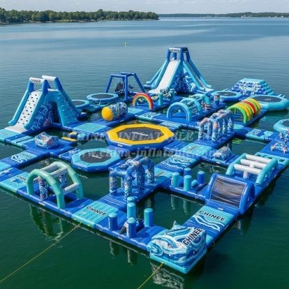 Make your waterfront the hottest destination with the S408 Ocean Theme Water Park from Chinee Inflatables. This floating playground blends towering climbs, fast slides, wobble bridges, balance logs, trampolines, and splash zones into a single, high‑capacity attraction designed for lakes, bays, and calm seaside venues. The vivid ocean graphics, soft landings, and varied challenge levels create an experience that keeps guests circulating and coming back for more.