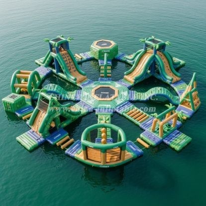 Chinee use customized anti UV&heat material makes the life span of the floating water park 30%-50% longer than normal material that most suppliers have been using, especially for the strong UV and high-temperature area.