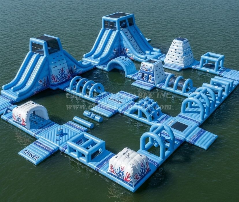 Chinee use customized anti UV&heat material makes the life span of the floating water park 30%-50% longer than normal material that most suppliers have been using, especially for the strong UV and high-temperature area.