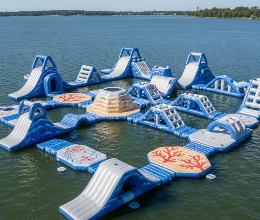 Chinee use customized anti UV&heat material makes the life span of the floating water park 30%-50% longer than normal material that most suppliers have been using, especially for the strong UV and high-temperature area.
