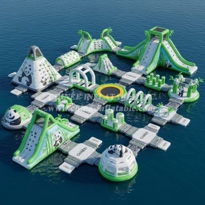 Chinee use customized anti UV&heat material makes the life span of the floating water park 30%-50% longer than normal material that most suppliers have been using, especially for the strong UV and high-temperature area.