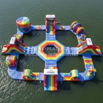 Chinee use customized anti UV&heat material makes the life span of the floating water park 30%-50% longer than normal material that most suppliers have been using, especially for the strong UV and high-temperature area.