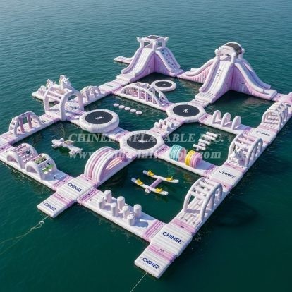 Chinee use customized anti UV&heat material makes the life span of the floating water park 30%-50% longer than normal material that most suppliers have been using, especially for the strong UV and high-temperature area.