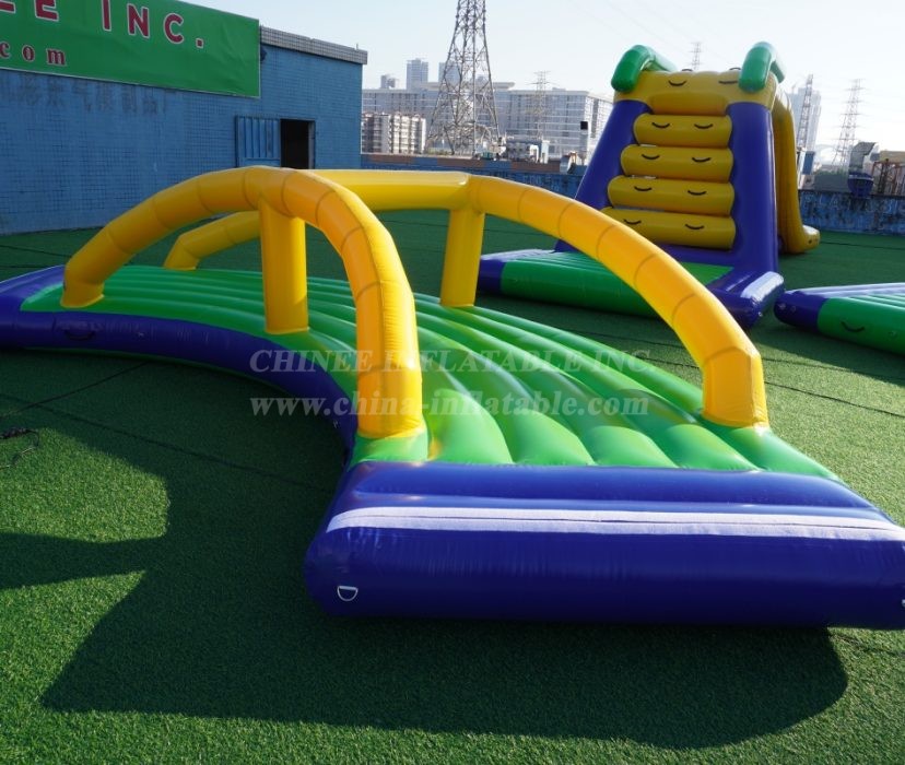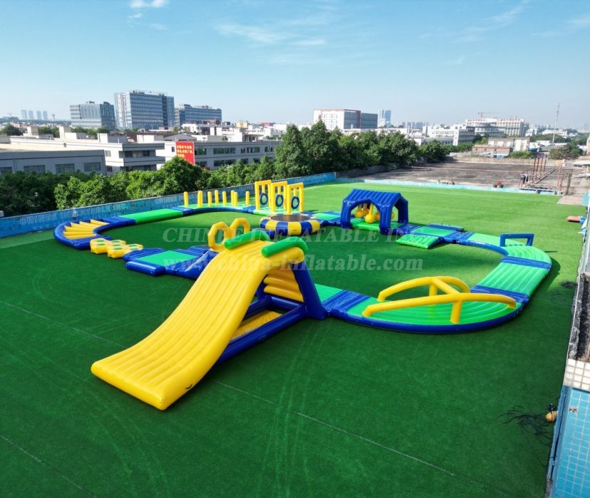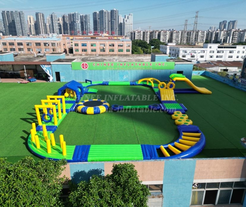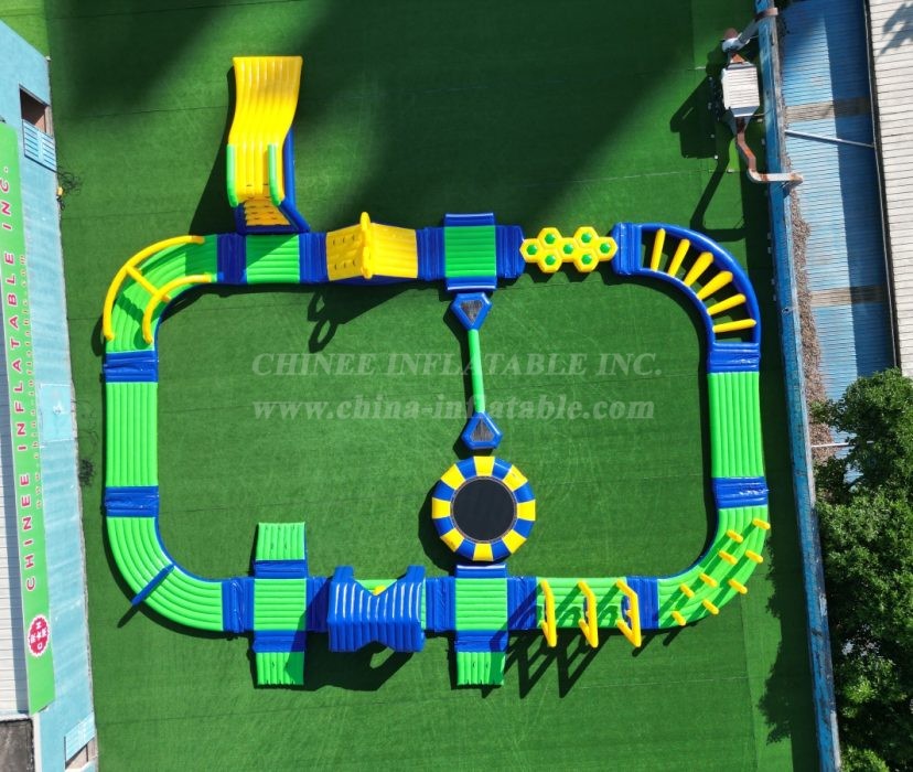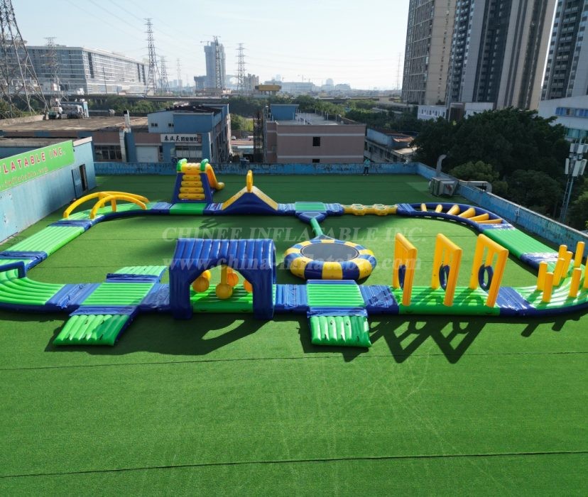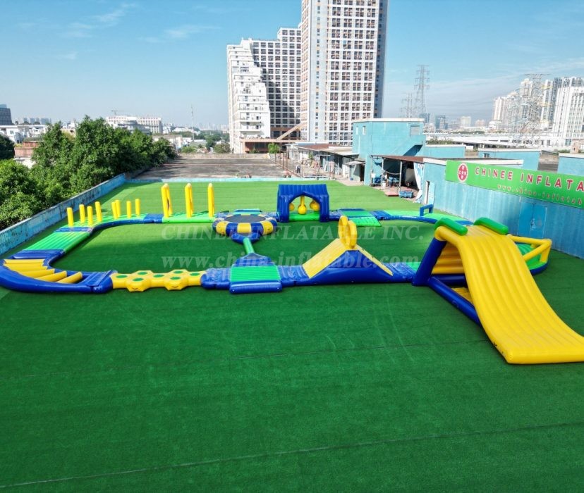 Key Features & Commercial Advantages: 🌊 Expansive & Modular Design: This impressive layout features multiple interconnected elements including a large inflatable trampoline, challenging balance beams, climbing structures, a thrilling slide, and various floating platforms and obstacles. Customize the configuration to fit your space and clientele. 💪 Heavy-Duty Commercial Grade: Constructed from robust, industrial-strength PVC, our water parks are built to withstand intensive commercial use, harsh weather conditions, and high participant traffic, ensuring maximum durability and longevity. 🛡️ Safety & Compliance: Engineered with participant safety as a top priority, featuring secure anchoring points, stable platforms, and high-quality materials to meet international safety standards. 📈 High Revenue Potential: A major attraction that draws crowds and encourages repeat visits, offering excellent return on investment for any commercial entertainment venture. 🎨 Customization Available: As a direct factory, Chinee Inflatables provides extensive customization options for size, color scheme, branding, and specific module selection to create a unique water park tailored to your business needs.