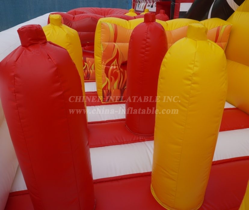 Embark on a Rescue Mission with These Features: 🚒 Giant Fire Truck Slide: The centerpiece of the attraction! Climb up the ladder and slide down from the impressive fire engine cab. 🔥 Exciting Obstacle Gauntlet: Participants will crawl through tunnels, dodge vertical and horizontal “fire extinguisher” pop-ups, navigate around inflatable wheels, and push through fiery barriers. 🧗 Multiple Challenge Elements: Includes climbing areas, bouncy sections, and crawl-throughs to keep the energy high and the fun non-stop. 🎨 Vibrant, Thematic Graphics: Detailed artwork featuring flames, emergency lights, and fire truck details creates a fully immersive experience. 🏆 High-Throughput Design: This large-scale obstacle course can accommodate multiple children at once, making it perfect for high-traffic events and maximizing rental revenue.