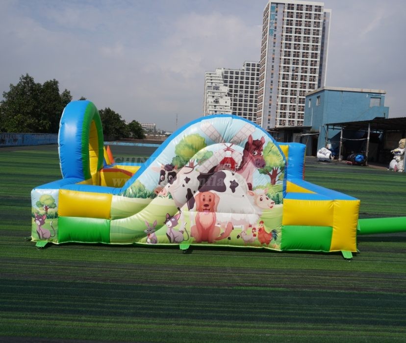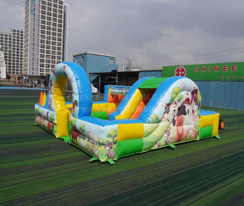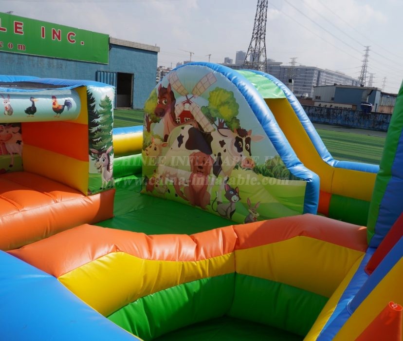 Why this is a must-have for your rental inventory: FARM-TASTIC FUN: The classic, gender-neutral farm theme is a guaranteed hit for birthday parties, preschool events, and community festivals. TODDLER-PERFECT DESIGN: Featuring low climbing walls, a gentle slide, and small, soft obstacles, this unit is built for the safety and enjoyment of children aged 2-6. PACKED WITH ACTIVITIES: It’s more than just a bounce house! This combo unit keeps multiple children entertained with bouncing, climbing, sliding, and obstacle play. VIBRANT & EYE-CATCHING: The bright colors and adorable, high-quality digital printing make this inflatable a fantastic centerpiece that kids will flock to. CHINEE INFLATABLES QUALITY: Built with heavy-duty, commercial-grade PVC, lead-safe materials, and reinforced stitching to withstand the demands of the rental industry.