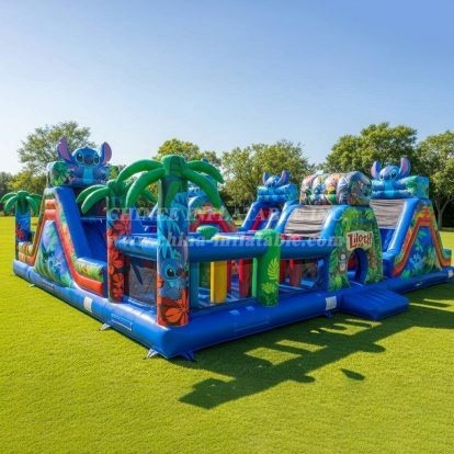 Our sewing tech is double stitching with fourfold stitching at the bottom stress point, we take care of all these details with extra reinforced bars to guarantee without any problems when customers use them, ensuring that the inflatables have a lifetime of over 3 years.