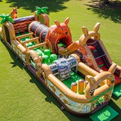 T7-3881 Kangaroo Theme Inflatable Obstacle Course