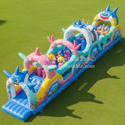 T7-4102 Baby Shark Theme Inflatable Obstacle Course