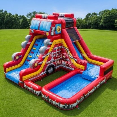 T8-5592 Firetruck Theme Inflatable Water Slide