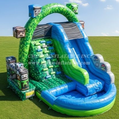 T8-7328 Minecraft Theme Inflatable Water Slide
