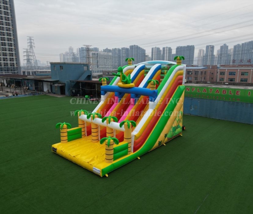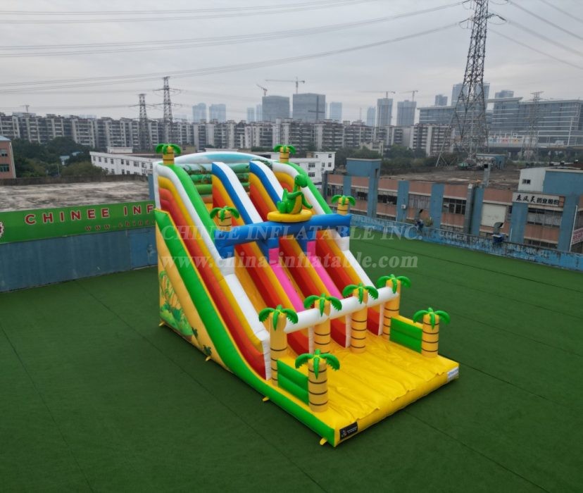 Why This Giant Slide is a Must-Have for Your Business: 🚀 High Throughput, High Profit: With multiple lanes, this slide minimizes wait times and maximizes participant turnover, directly translating to higher revenue potential for your rental operations. 🦖 Massive Visual Impact: The vibrant colors and engaging dinosaur/jungle theme draw crowds and create an instant “wow” factor, ensuring your event stands out. 💪 Built for Relentless Commercial Use: Crafted from robust, lead-free 18oz PVC material, this slide features reinforced stress points and commercial-grade stitching throughout. It’s built to endure the rigors of frequent use and deliver a long, dependable service life. 🛡️ Safety First Design: Incorporating safety features such as tall sidewalls, secure climbing areas, and a soft landing zone, this inflatable meets stringent safety standards for commercial applications. 🏭 Direct from the Source: Partner with Chinee Inflatables, a manufacturer with over two decades of global export experience. Benefit from factory-direct pricing, superior quality control, and custom branding options.