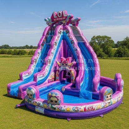 Bring the sparkle and excitement of L.O.L. Surprise to your next event with the T8-8756 L.O.L. Surprise Inflatable Water Slide. Designed by Chinee Inflatables Inc. (est. 1998), this vibrant pink-and-blue centerpiece features tall dual sliding lanes, a shaded climbing lane, and a large splash pool for a refreshing finish. The playful artwork, glittery-style accents, and adorable character graphics make it a guaranteed crowd magnet for family parties, school fun days, and community events.
