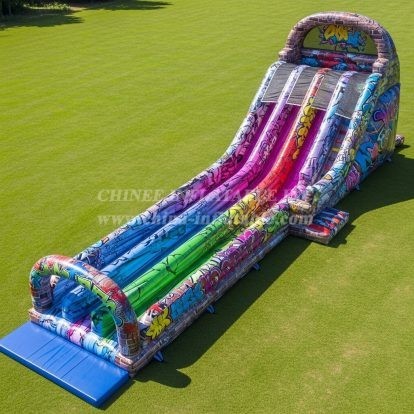 Experience the thrill of urban style fun with the T8-8781 Graffiti Inflatable Slide from Chinee Inflatables. Featuring vibrant street art designs and multiple lanes for racing excitement, this slide is perfect for festivals, school events, and backyard parties. Crafted from high-quality materials with precision manufacturing, it promises durability, safety, and hours of energetic entertainment. Bring color, attitude, and high-speed action to your events with this stunning inflatable centerpiece.