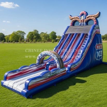 Bring the thrill of the open road to your event with the T8-8967 American Style Inflatable Dry Slide by Chinee Inflatables. Featuring bold patriotic colors, Route highway graphics, and a striking eagle design, this slide is perfect for themed festivals, community gatherings, or outdoor celebrations. Built with top-quality materials for safety and durability, it offers hours of exhilarating fun for all ages while making a bold visual statement.
