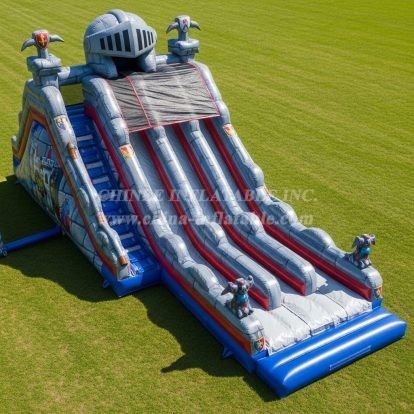 The Knight Theme Inflatable Slide combines thrilling triple lanes with a striking medieval castle design, perfect for exciting outdoor events. Its detailed knight helmet and shield accents bring an authentic fortress vibe. Ideal for birthday parties and themed festivals, this durable inflatable slide invites kids to climb, race, and slide in a fun and safe environment.