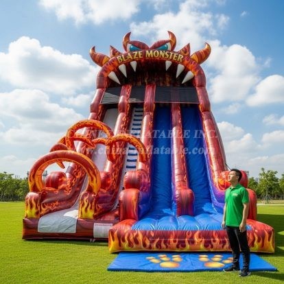 Experience heart-pounding excitement with the Blaze Monster Inflatable Slide. This towering slide features fiery monster-themed design with bold flames and fierce eyes, delivering thrilling fun for all ages. Its wide lanes and climbing ladder ensure safe and exhilarating play, perfect for outdoor events and parties looking to ignite adventure.