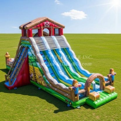 Experience the fun of the countryside with this Farm Inflatable Water Slide. Featuring a vibrant barn design, multiple sliding lanes, and charming scarecrow decorations, it brings a playful farm adventure to your event. Perfect for outdoor parties, this eye-catching inflatable offers endless excitement and refreshing water thrills for kids and families alike.