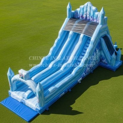 Experience the magic of winter with this Frozen-themed inflatable water slide. Featuring iconic Elsa and Anna designs, this slide offers thrilling fun with a, icy décor perfect for Disney fans. Made with durable materials, it provides a safe and exciting ride for kids at any summer party or event.
